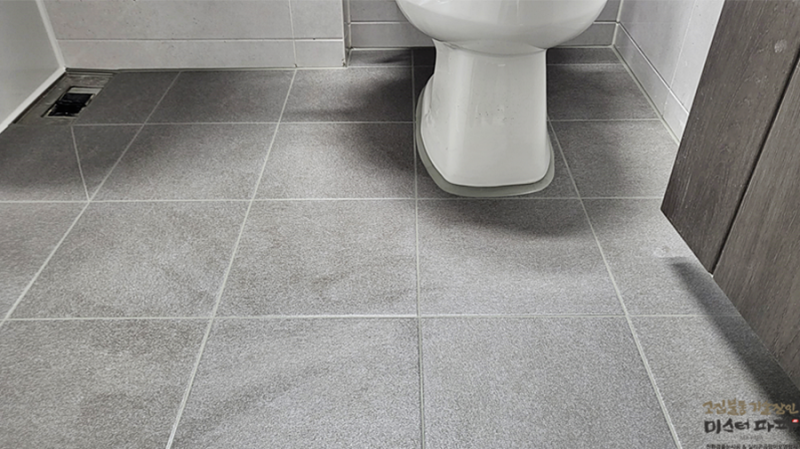 케라폭시그라우트의 장점 중 하나는 줄눈이 없어도 그라우트 시공이 가능하다는 점입니다. 글리터 그라우트와 달리 점도가 높아 기존 메지가 없어도 물처럼 그라우트가 아래로 무한히 들어가지 않는다고 합니다.